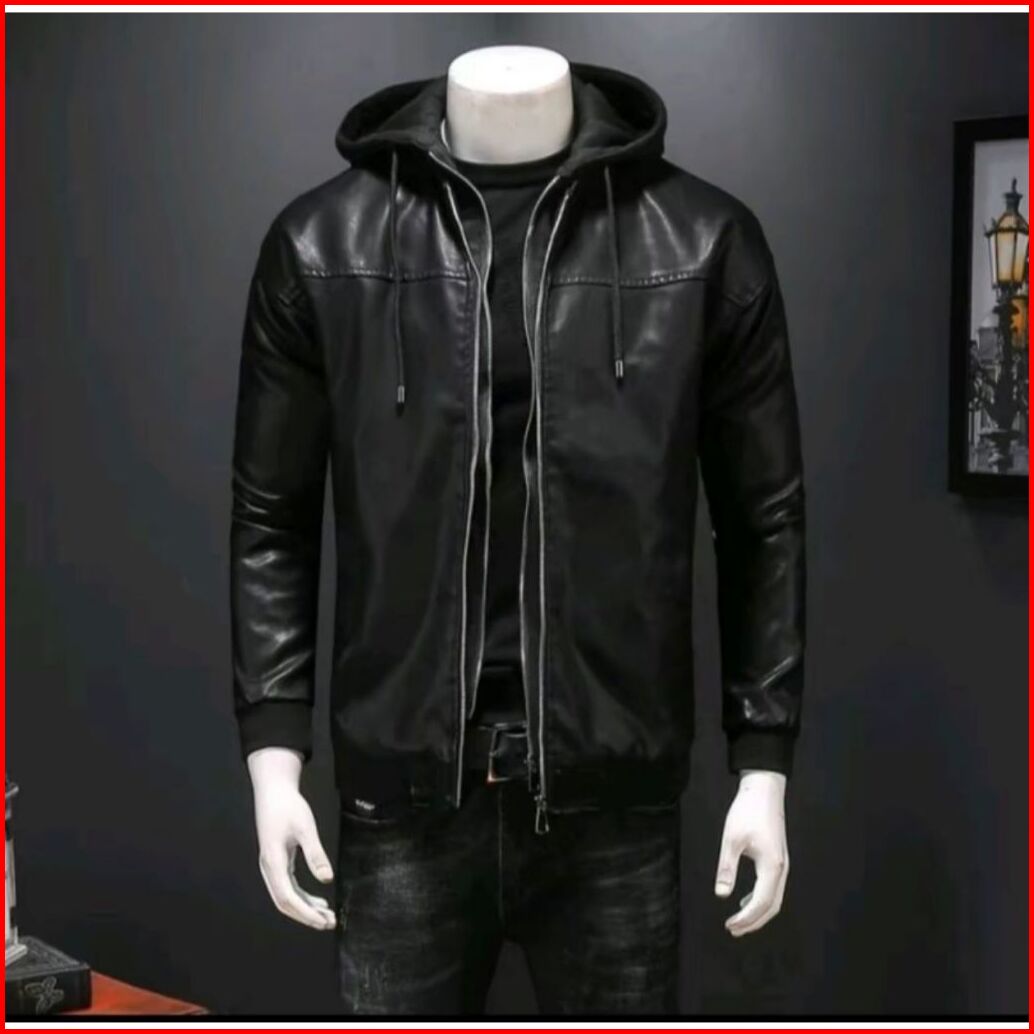 Kamba.store-jaket Kulit Pria Topi Kupluk Zipper Bahan Viena Waterproof Distro Casaul Keren Santai Terbaru