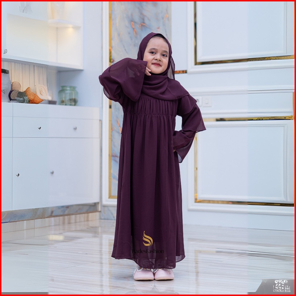 Rades - Gamis Anak Perempuan Syari Set Hijab Pashmina Ceruty Babydoll