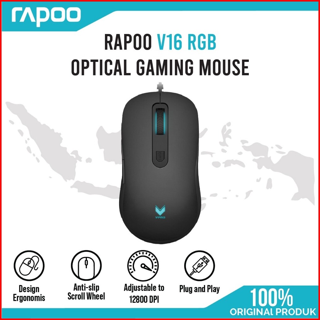 Mouse Gaming Rapoo V16 Rgb Optical 2000dpi Wired Usb Hitam Original