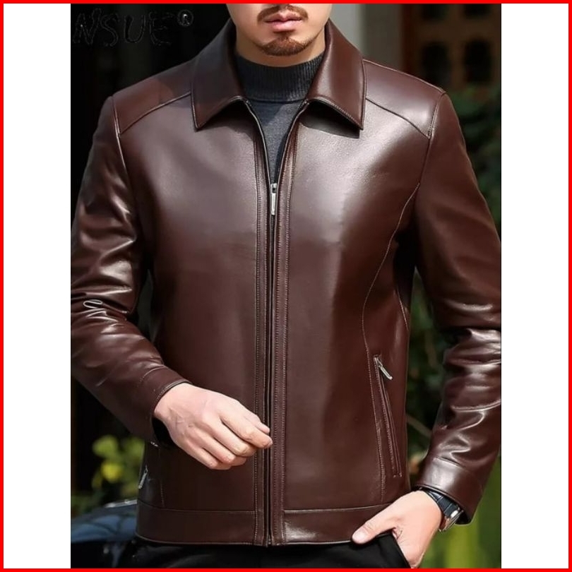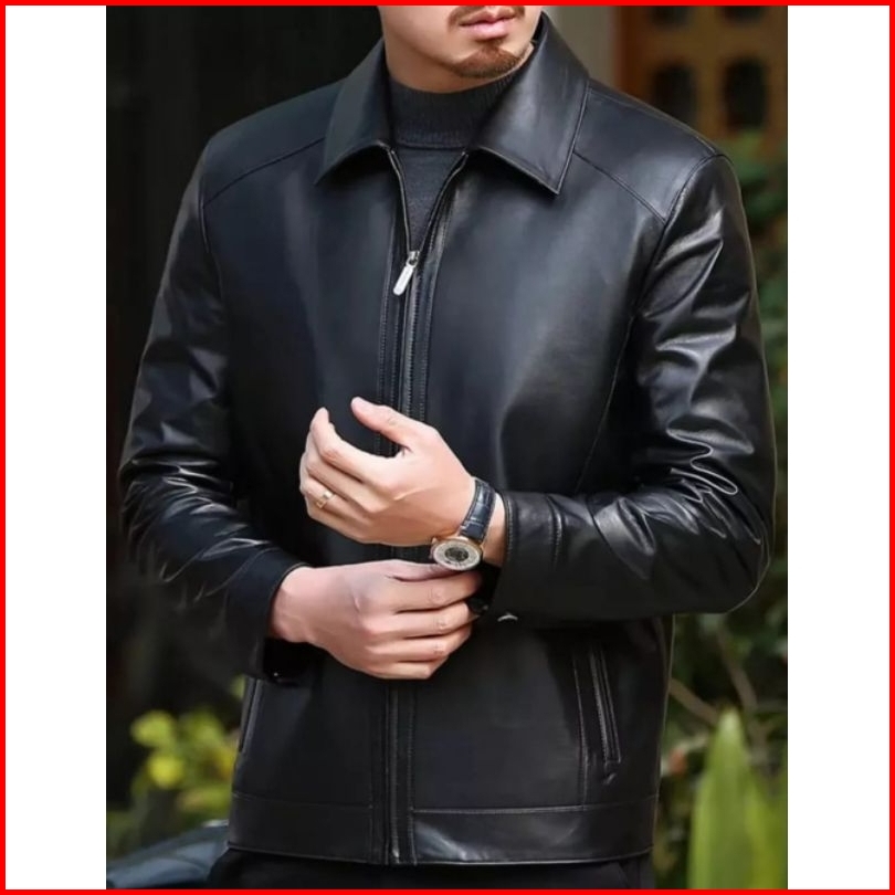 Jaket Kulit Asli Pria Model Kerah Kemeja Anti Api Anti Air New Elegant
