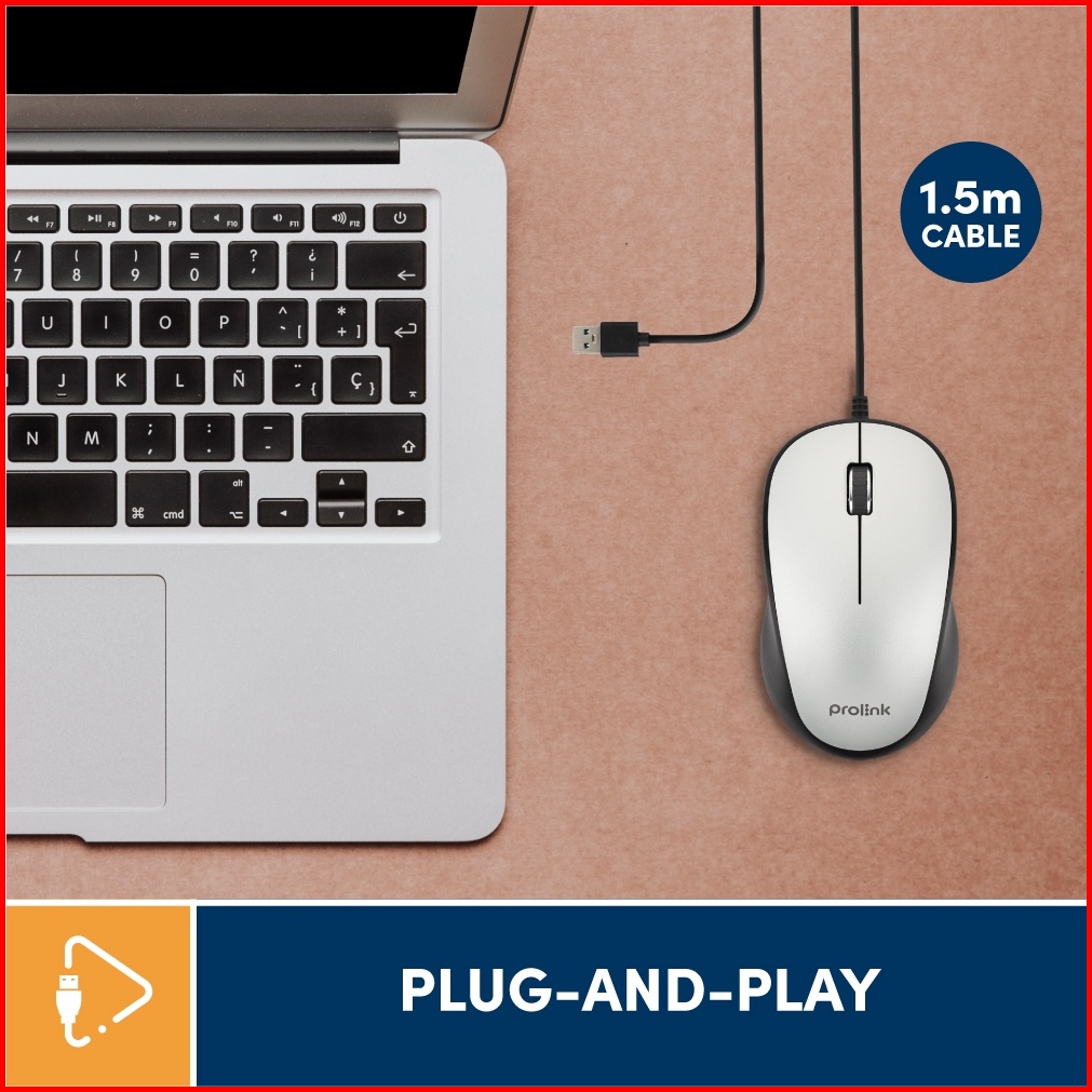 Prolink Usb Mouse Wired Cable L 3 Buttons L Optical 1200 Dpi L Mouse Kabel