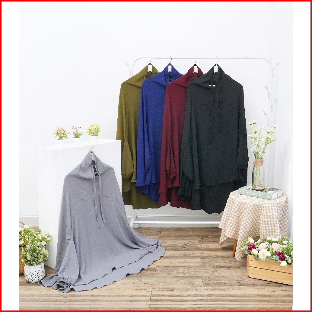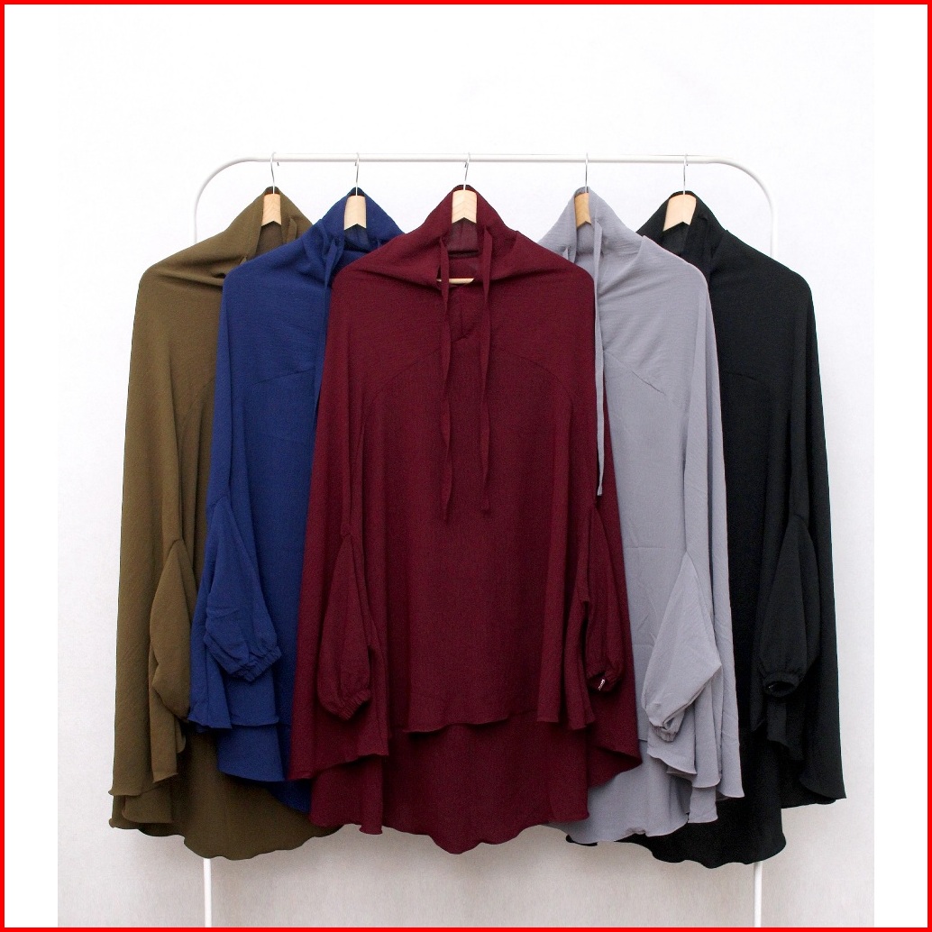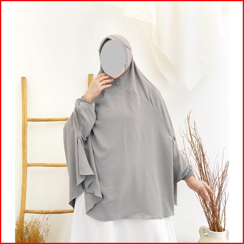 Khimar Lengan Jumbo Jilbab Jumbo Lengan Kain Crinkle Non Pad Dan Pad