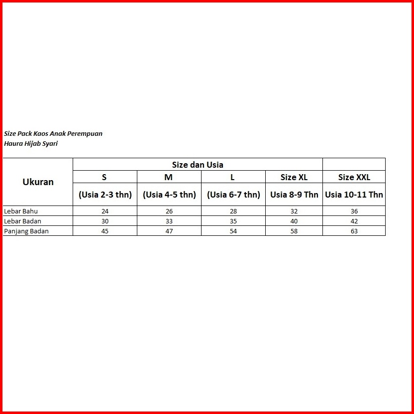 Haura Hijab Syari Kaos Anak Setelan Bahan Katun Size S-xl