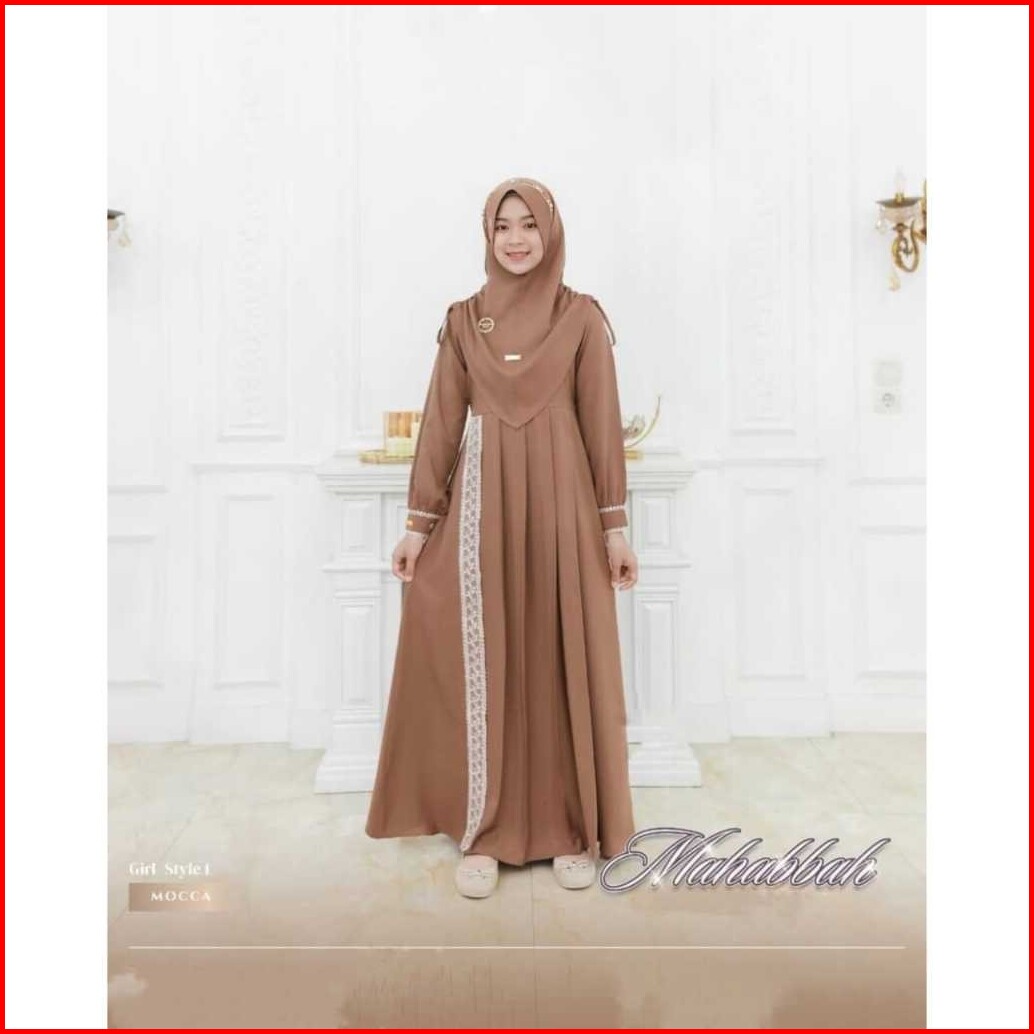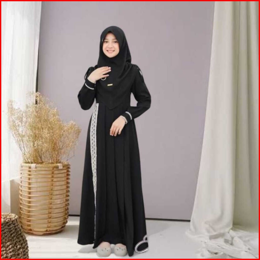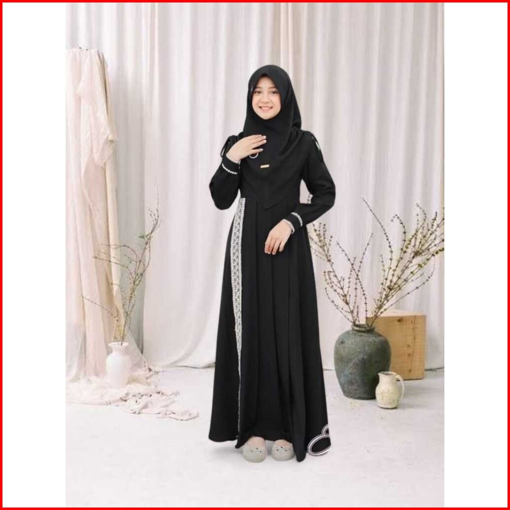 Gamis Muslim Anak Perempuan Usia 7-15 Tahun Padma Syari Kids Bahan Crinkle Airflow Mix Brukat