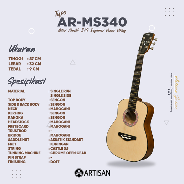 ARTISAN Gitar Akustik 3/4 Beginner AR - MS340 Senar String Guitar
