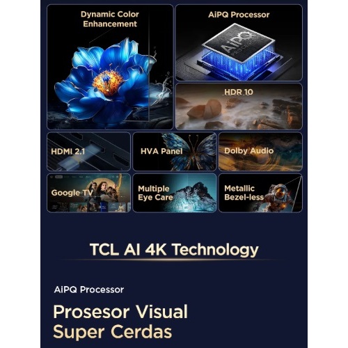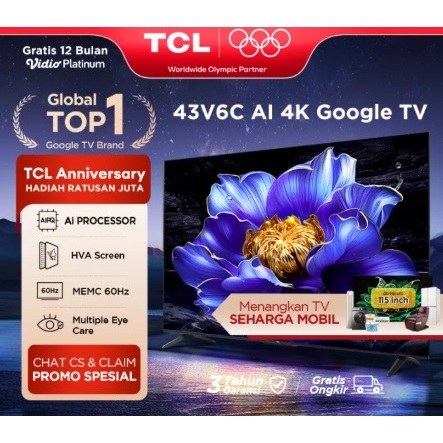 TV TCL 43 inch AI 4K UHD 43V6C Google ANDROID SMART TV AiPQ Processor HDR 10+ HVA Panel Dolby youtub