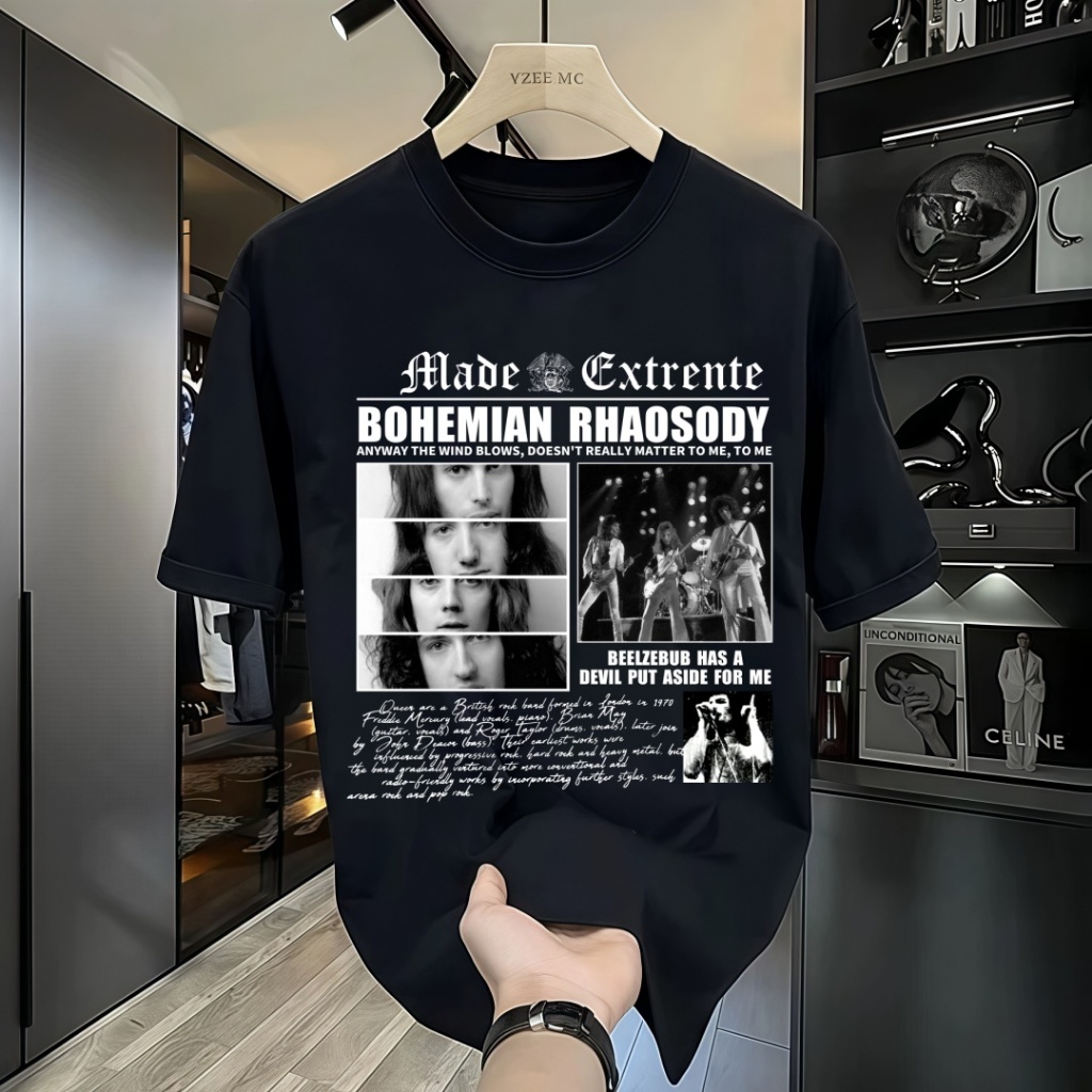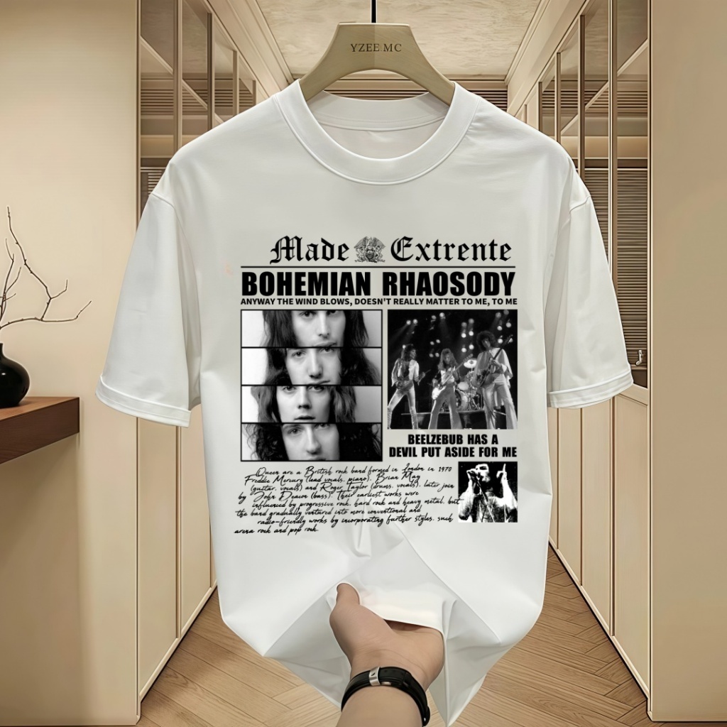 Kaos T pendek pria retro dari merekashion trendy Amerika, baju atasan pasangan yang elegan.