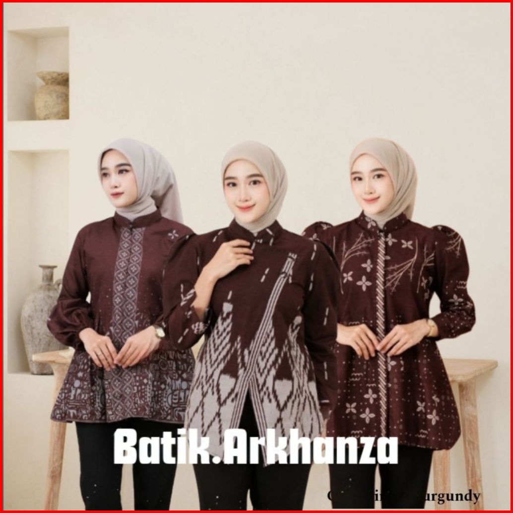 Batik Arkhanza Baju Batik Wanita Modren Monalisa Genes Warna Coklat Mahogany M L Xl Xxl Xxxl Asli Pekalongan