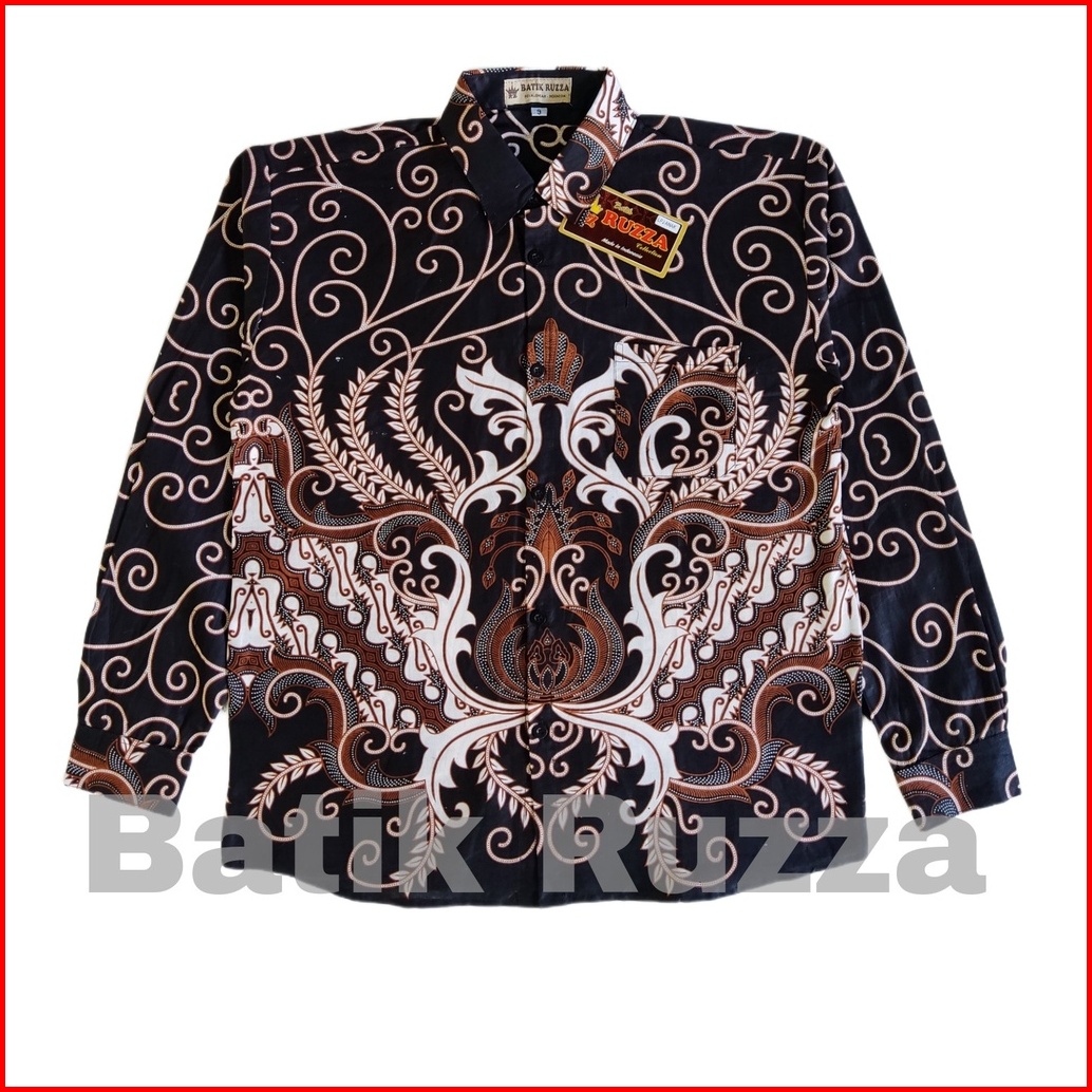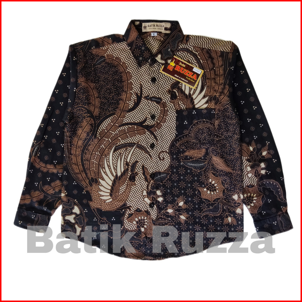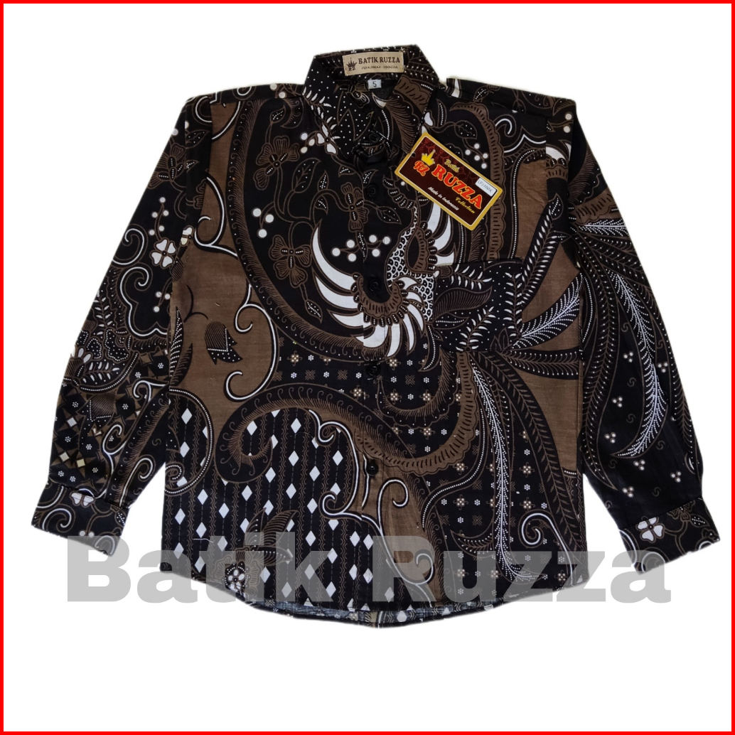 Ruzza Batik Anak Lengan Panjang Ukuran 2-15 Tahun Kemeja Motif Mahkota Cucak Rowo Navy