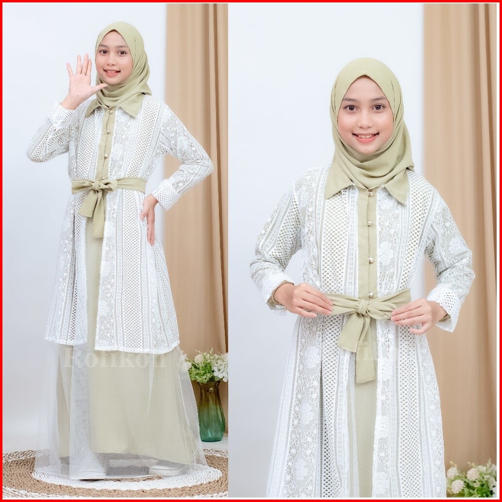 Gamis Muslim Anak Perempuan Usia 10-11-12-13-14-15 Tahun Padma Syari Kids Bahan Crinkle Airflow Mix Brukat