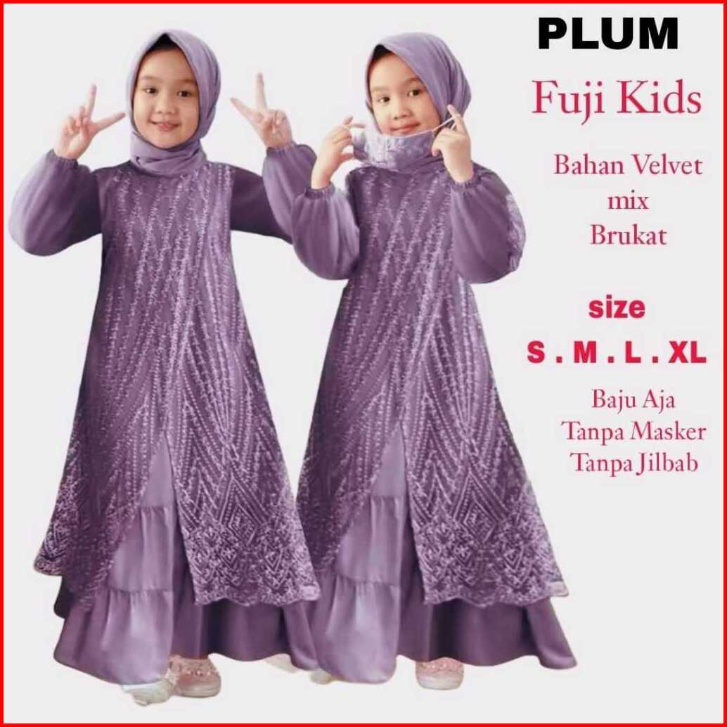 Kid Olivia 3-4thn 5-6thn 7-8thn 9-10thn Gamis Anak Burgundy Dress Brukat Anak Muslim Lebaran 2025