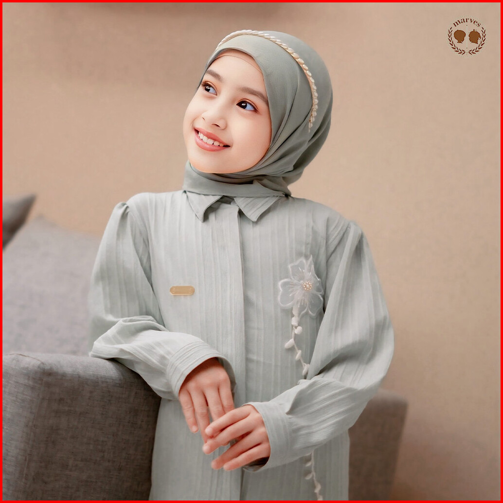 Marves Tsalisa Gamis Baju Muslim Anak Perempuan Bahan Crinkle Elora Usia 1 Hingga 14 Tahun