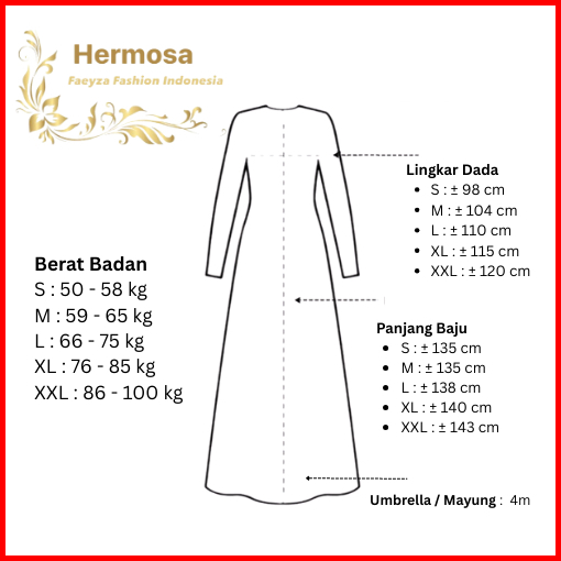 Hermosa - Gamis Polos Opnesel Wallycrepe Premium Umbrella 4m Gamis Hermosa