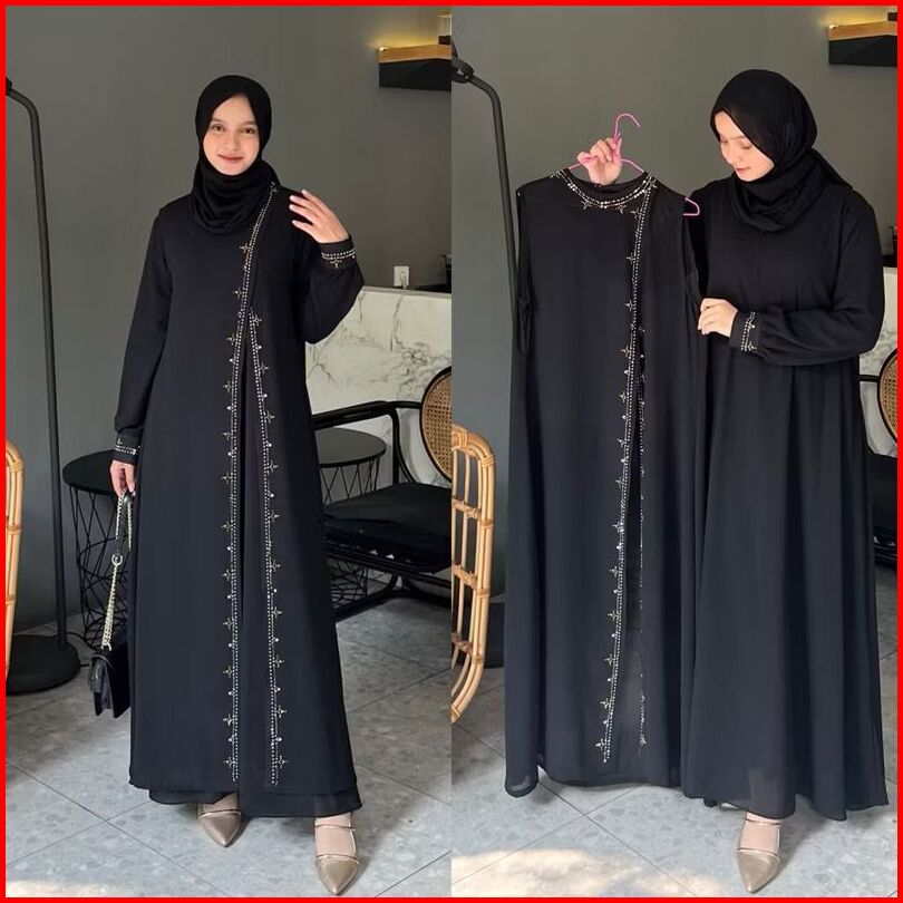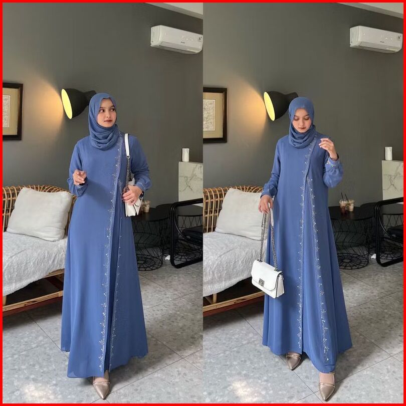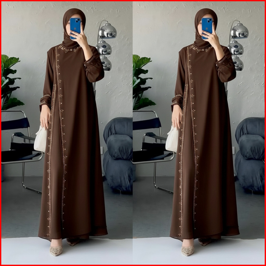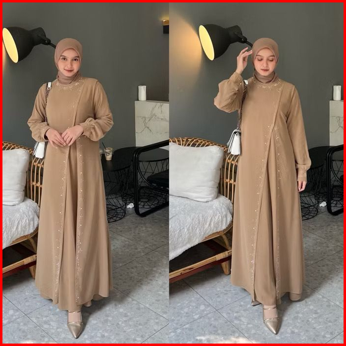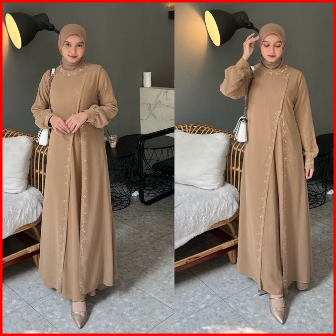 Fc Gamis Lebaran 2026 Model Gamis Terbaru Natasya Dress Ceruty Set Outer Lepas Pasang Kombinasi Swarovski Mewah Elegan G