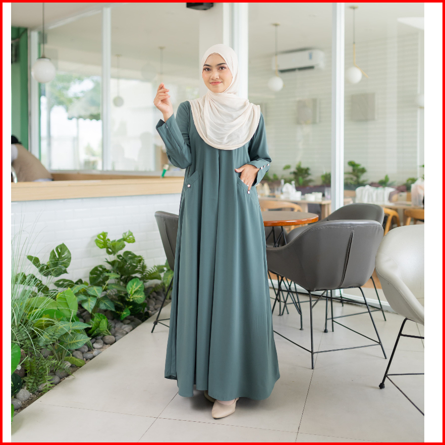 Yumna Dress Abaya Gamis Haji Umroh Elegan Busui Muslimah Bahan Lembut Halus Flowy Adem