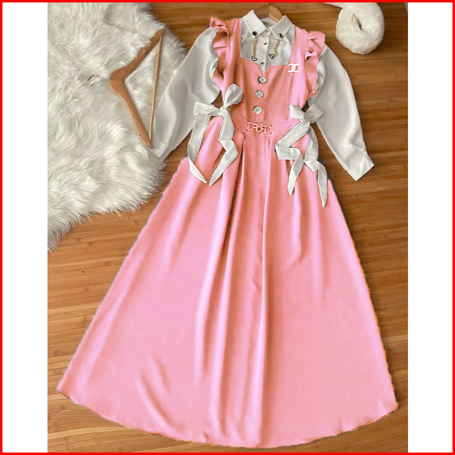 Terlaris Gamis Muslim Anak Perempuan Model Korean Style Queen Dress Cotton Twill Terbaru Size Anak