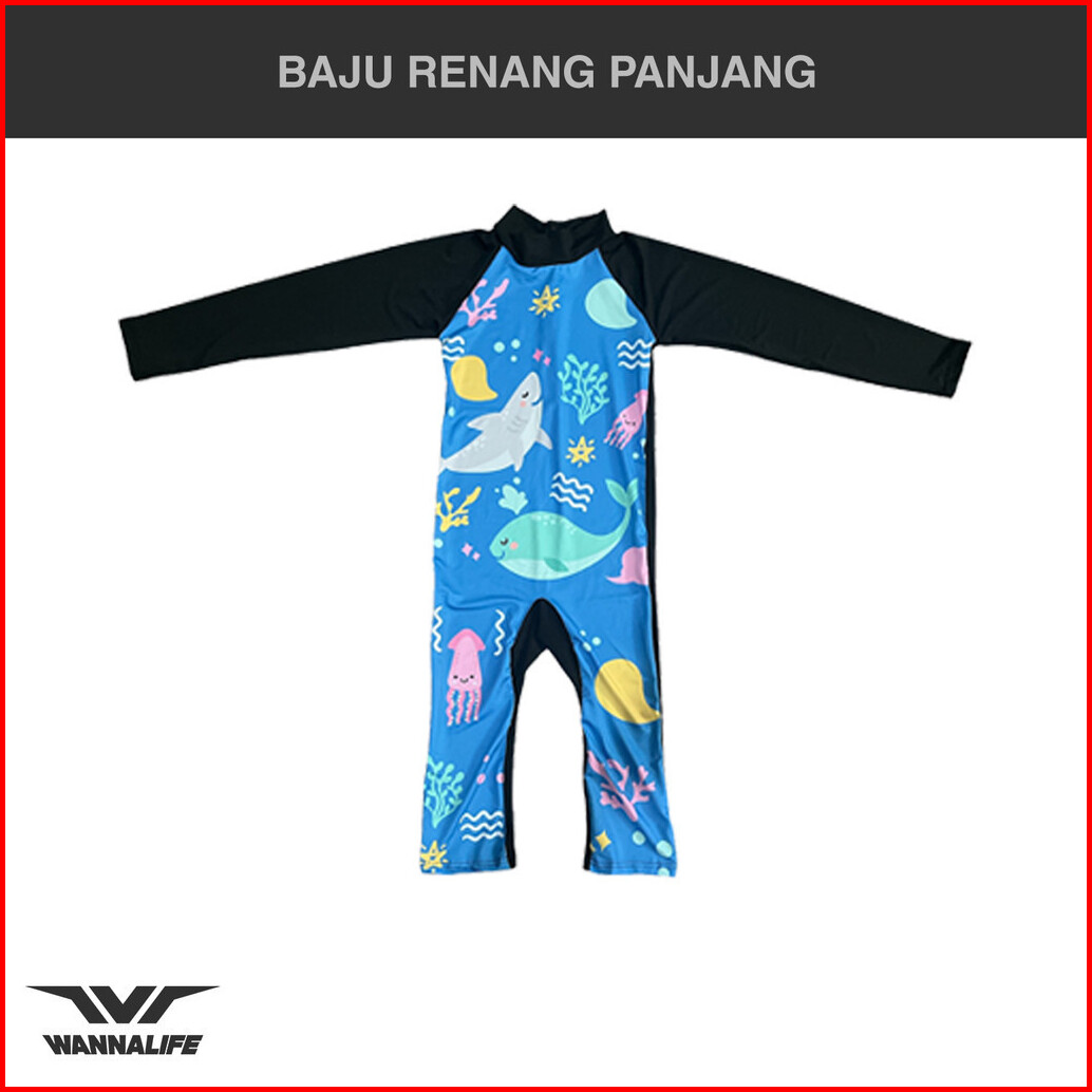 Wannalife Baju Renang Anak Panjang Motif Swim Suit Diving Laki-laki Laki Cowok Dan Perempuan Cewek Karakter Kartun Lucu