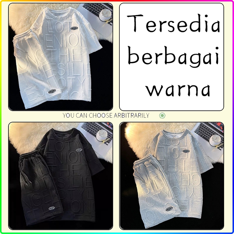 baju setelan kaos pria Korea Selatan 2025 new Mode baju kaos oversize pria distro hitam T shirt abu abu kaos lengan pendek jumbo cowok sport Putih fashion fit one set pria korean style ootd