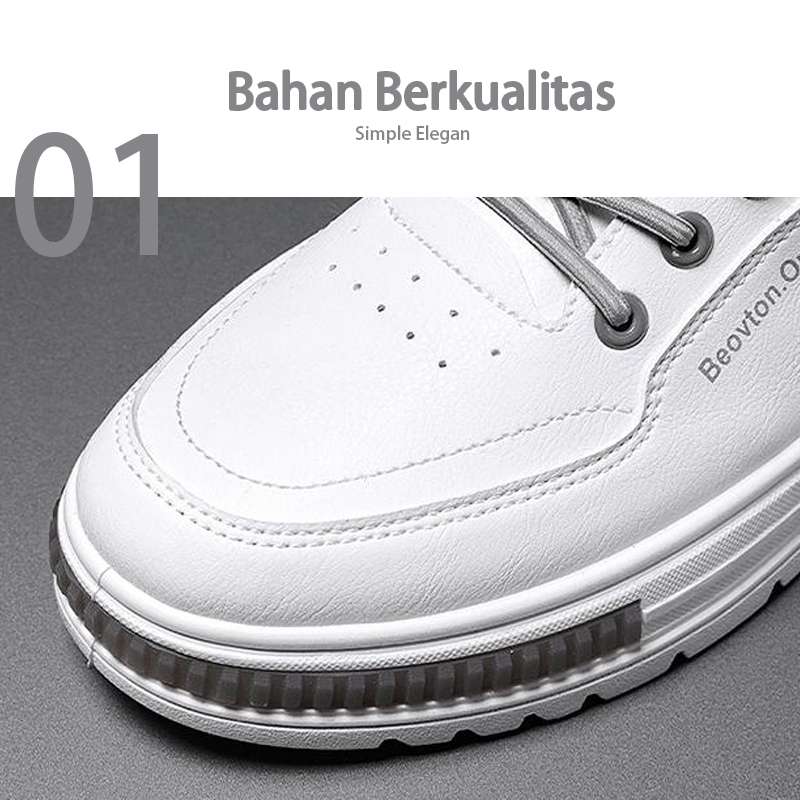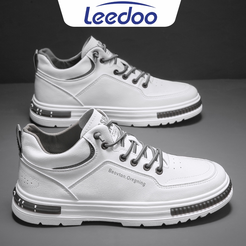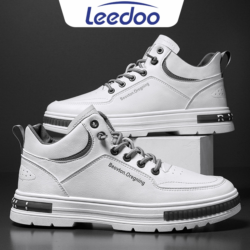 Leedoo Sepatu Kulit Pria Original Kekinian Sneakers Casual Tinggi Kerja Kuliah Sepatu Putih MC449