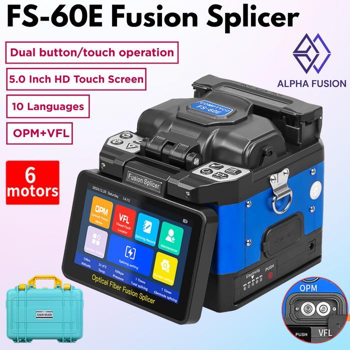 Fusion Splicer FS-60E COMPTYCO 6 Motors TOUCHSCREEN Flip Screen 180 derajat 5.0 Inch HD / Fiber Optic Splicer COMPTYCO FS60E OPM + VFL FREE BOX