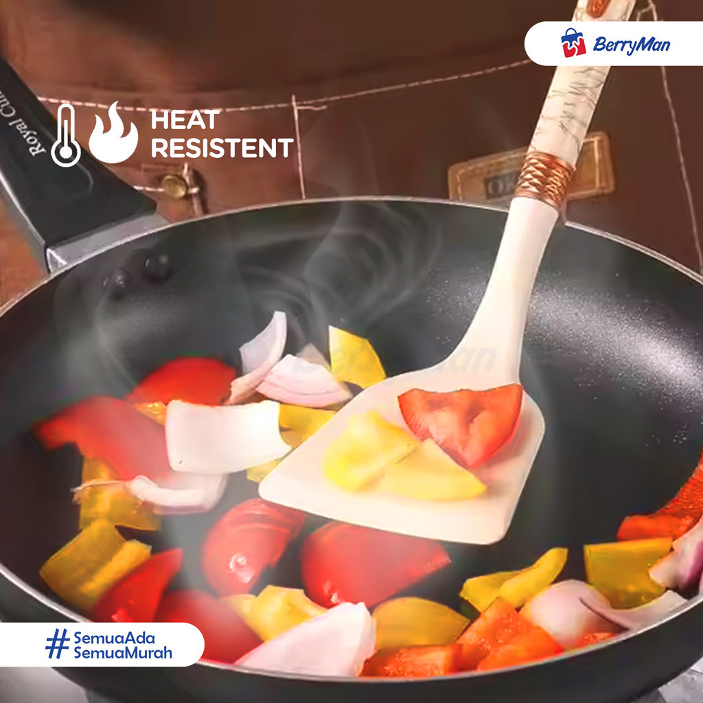 Set 3 Pcs Spatula Silikon Tahan Panas Food Grade Soup Ladle Turner Anti Lengket Motif Marmer