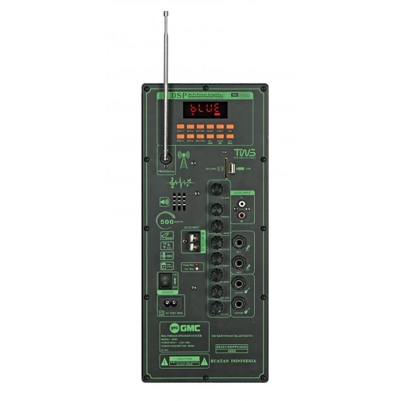 Speaker Aktif GMC 18Inch 899V Power 500Watt + 2 Mic Wireless ( NEW) Speaker 18 Inch GMC 899V