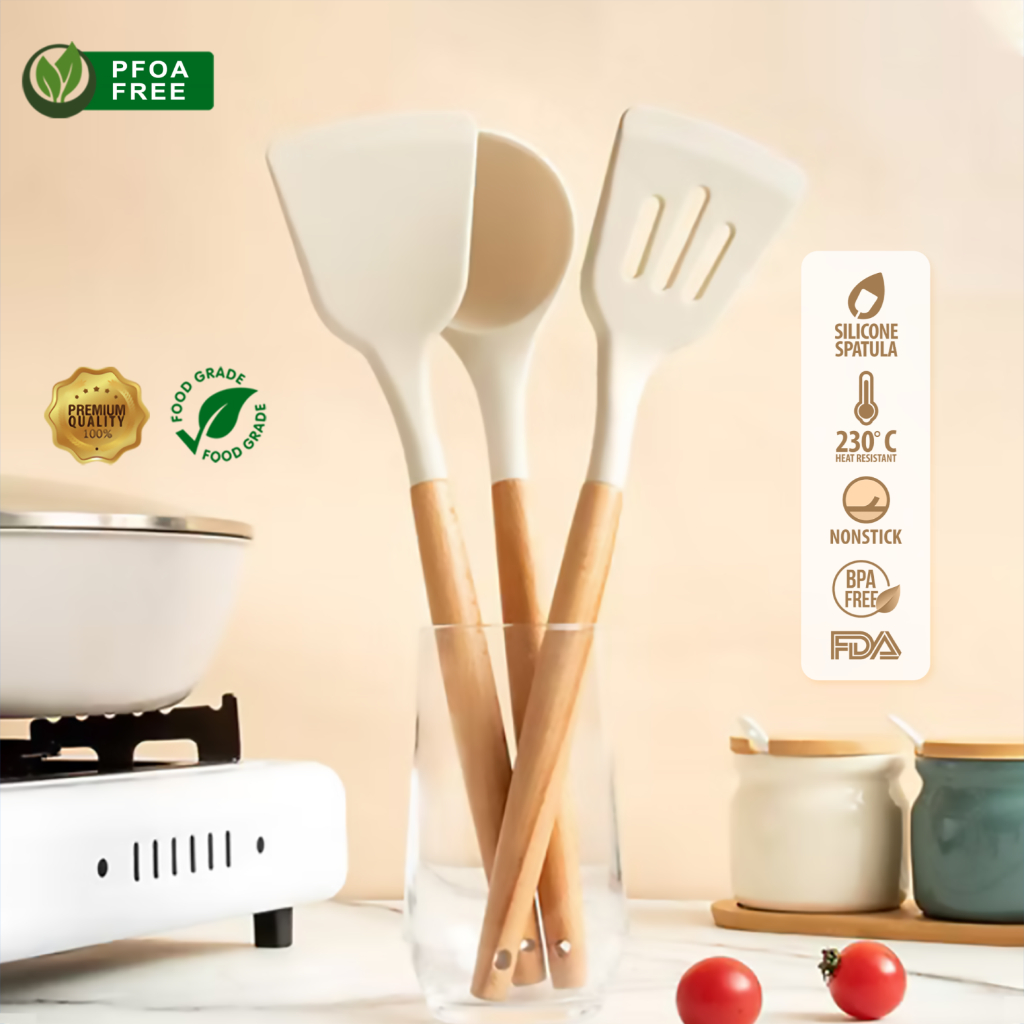 SPATULA SET 3PCS silikon vortuner utensil SENDOK MASAK Alat Dapur Silicon Sutil Silicone tahan panas