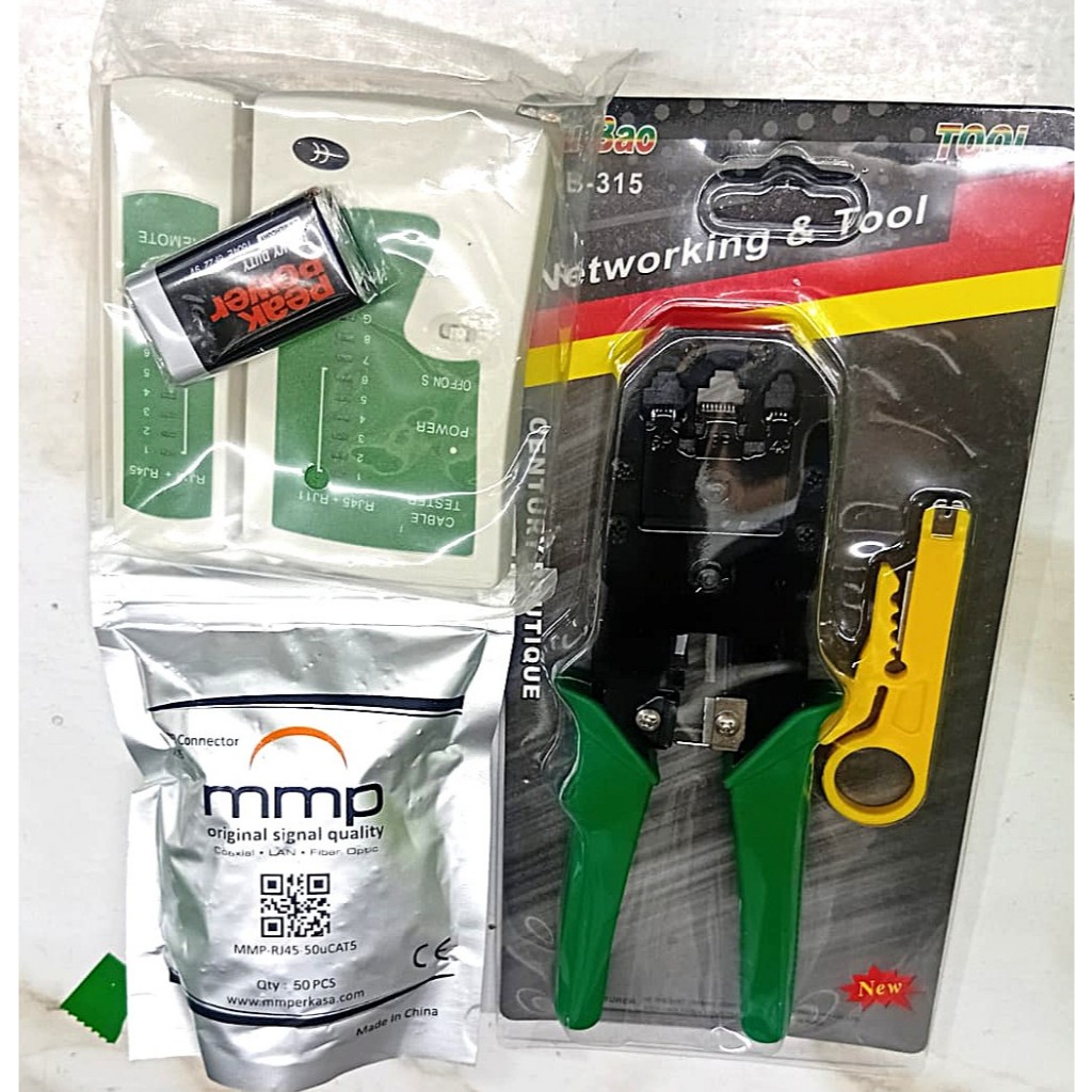 Paket tools RJ 45 tang crimping 3 in 1 LAN tester dan pin RJ 45