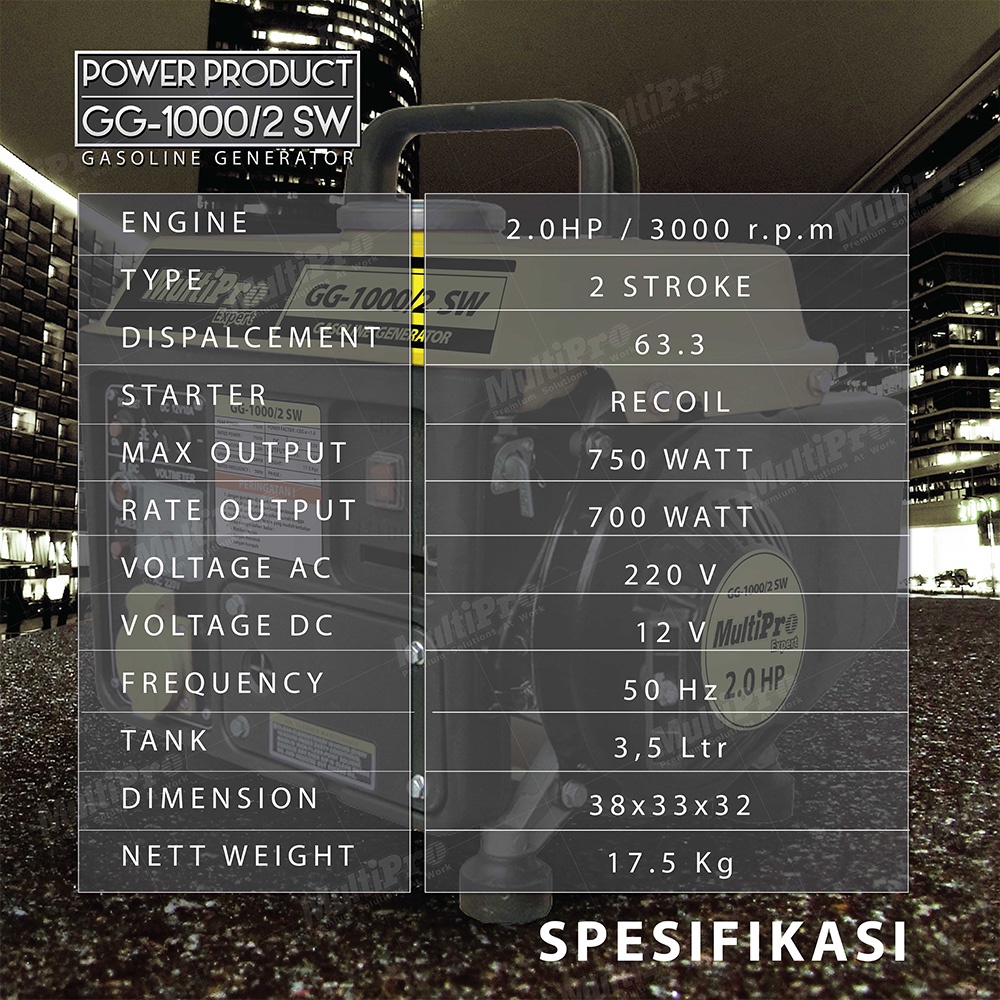 MULTIPRO - Gasoline Generator - GG-1000/2 SW , MULTIPRO - Gasoline