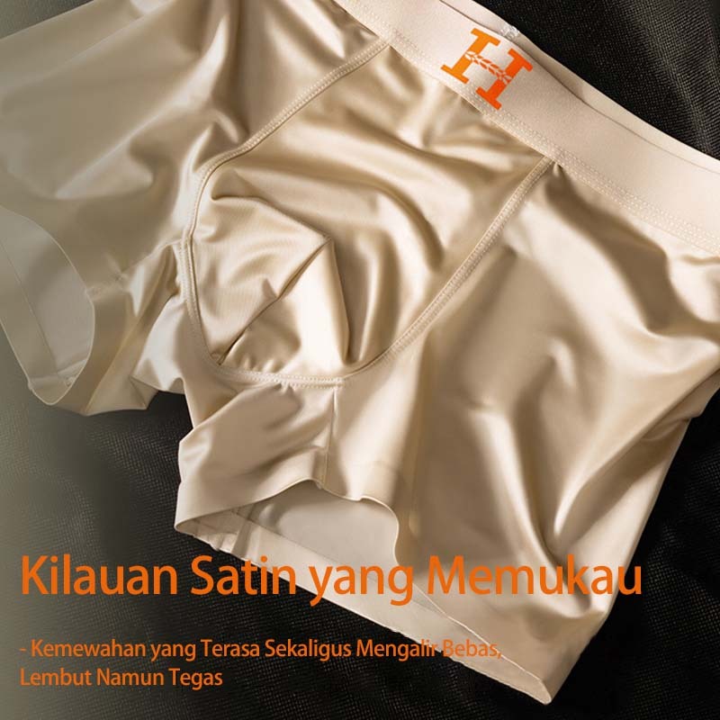 HEPNIES Celana Dalam Pria 3pcs Premium Bahan Sutra Es Tanpa Jahitan Lembut Bernapas Menyerap Keringat Tidak Gerah