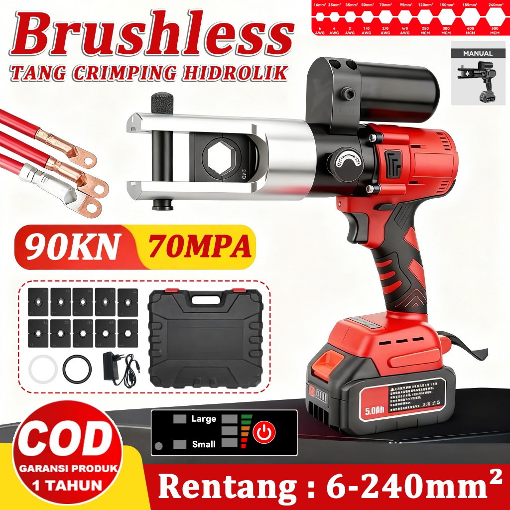 EFFORT Tang Crimping Hidrolik Listrik 70Mpa Tekanan Alat Tang Skun Kabel Portabel Rentang 6-240mm² Alat crimping kabel