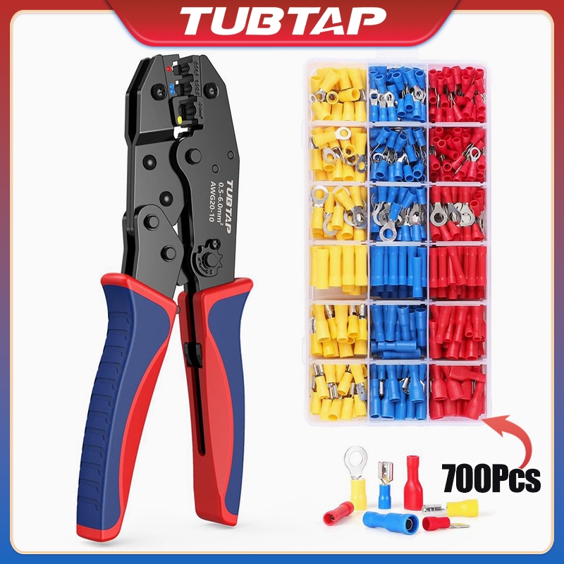 TUBTAP 20-10 Tang Crimping Untuk Lug Kabel 700PCS Lug Kabel Berisolasi, Kit Alat 0,5-6 Mm² Alat Kabel Tang Sekop Konektor Crimp Kabel