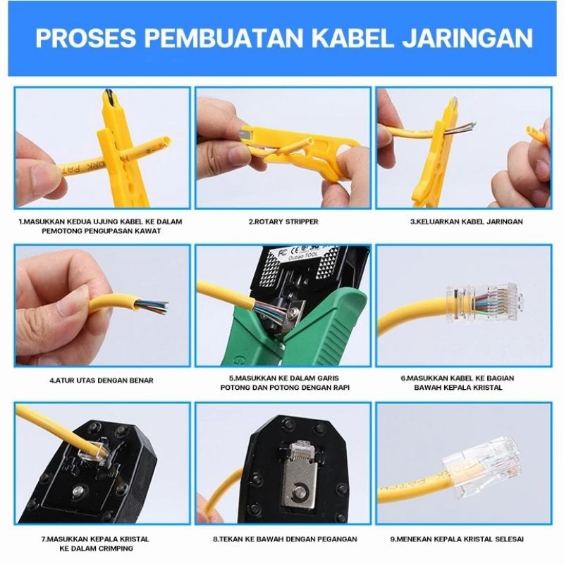 TOOLKIT NETWORK REPAIR TANG CRIMPING LAN TESTER RJ45 RJ 11 set alat Crimping LAN lengkap