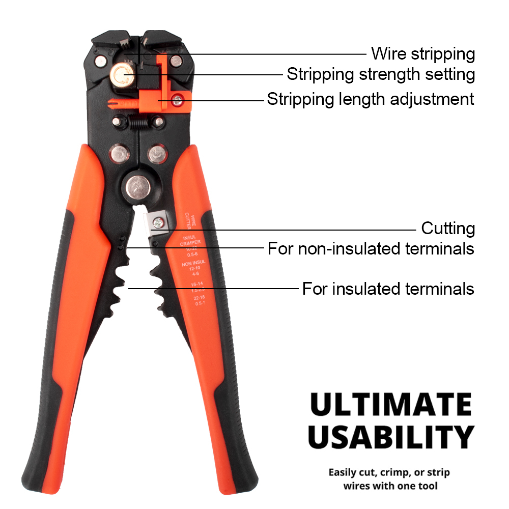 JLD Wire Stripper Automatic Wire Stripper Crimper Electrician Crimping Tool Tang Potong Kupas Kabel 8" 0.2-6.0mm Metal