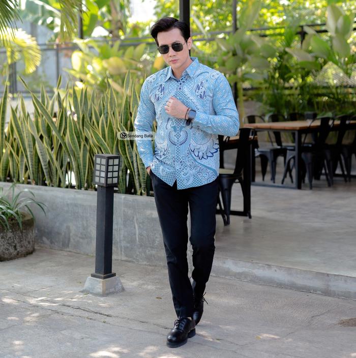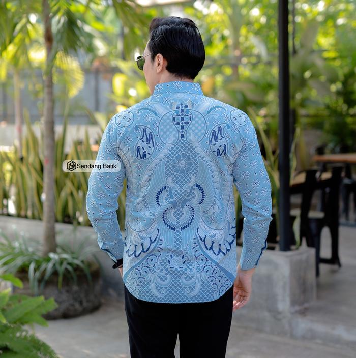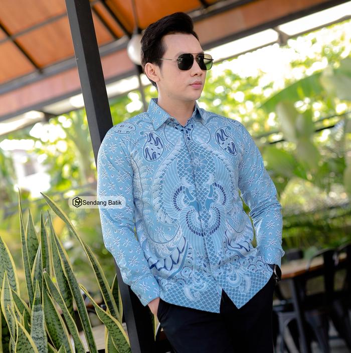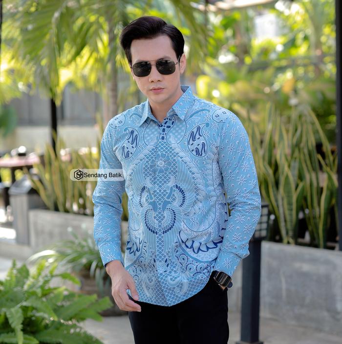 KEMEJA BATIK MOTIF BASKARA BIRU SLIMFIT PRIA LENGAN PANJANG KATUN FURING ERRO BAJU KONDANGAN LEBARAN KERJA MODERN - S