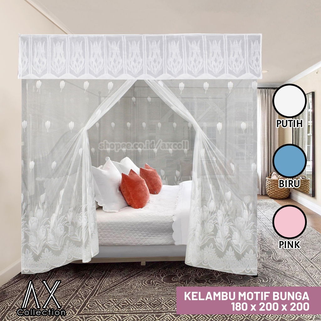 Kelambu Tidur Persegi Motif Weoliny Dengan Poni Cantik 180x200 Axcoll