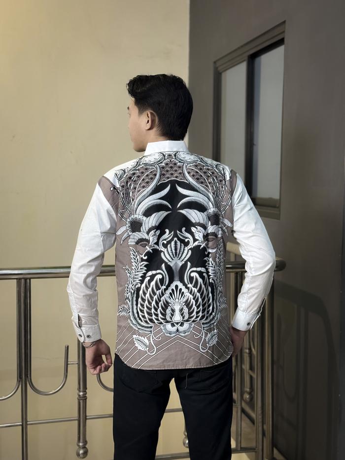 KEMEJA BAJU BATIK PRIA LENGAN PANJANG KASUAL JUMBO MODERN SLIMFIT PREMIUM PEKSI TWIN PUTIH - S