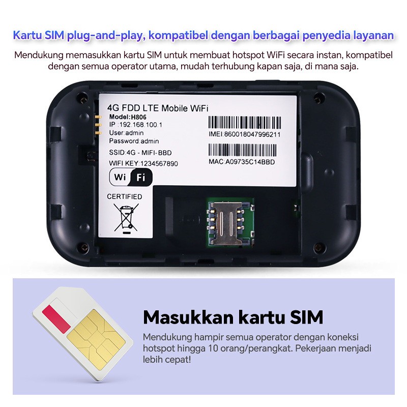 (/Gratis Ongkir) Wireless Router 4G Modem 150Mbps H806 Mobile Broadband WiFi WIFI Mifi 4G All Operator Mendukung 10 perangkat