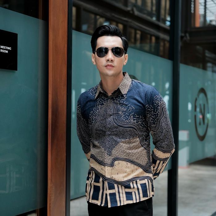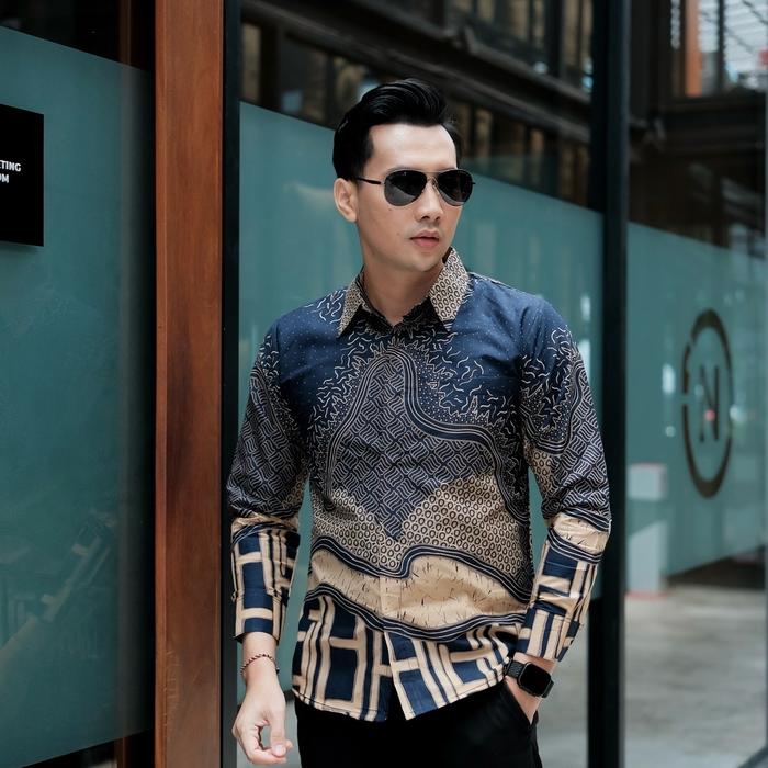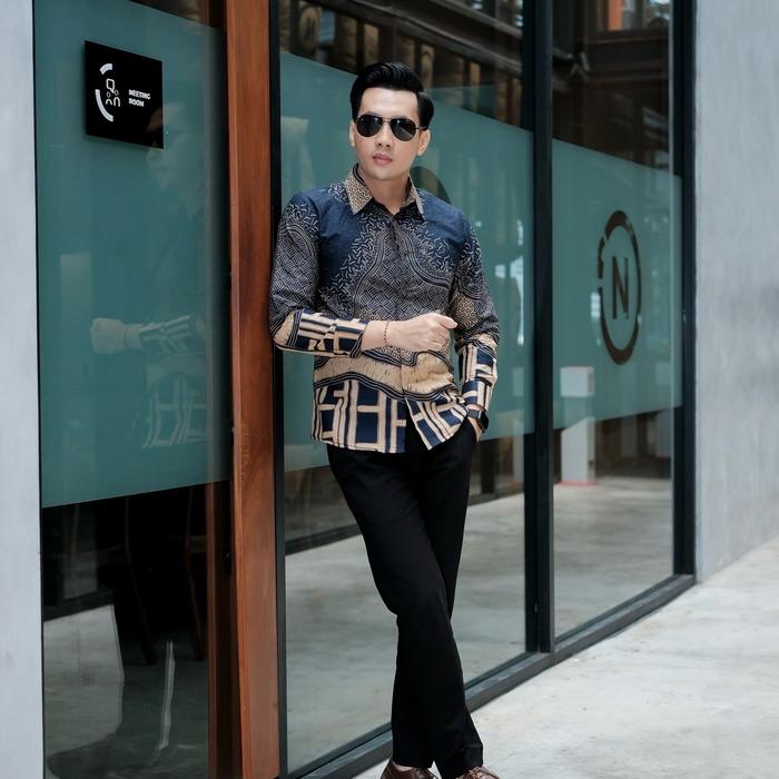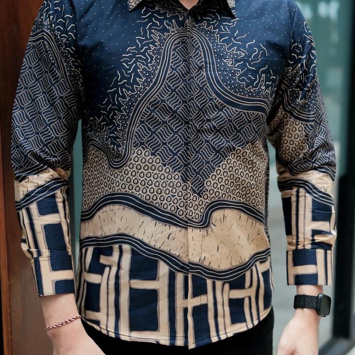 BARA NAVY KEMEJA BATIK PRIA LENGAN PANJANG FURING FULL KATUN SLIMFIT LEMBUT KAIN MOTIF BIRU NYAMAN TEBAL - M