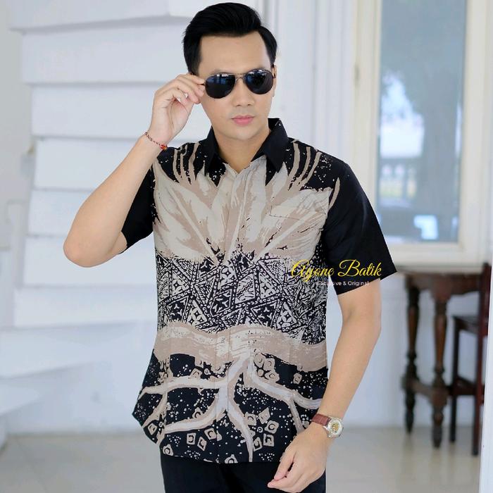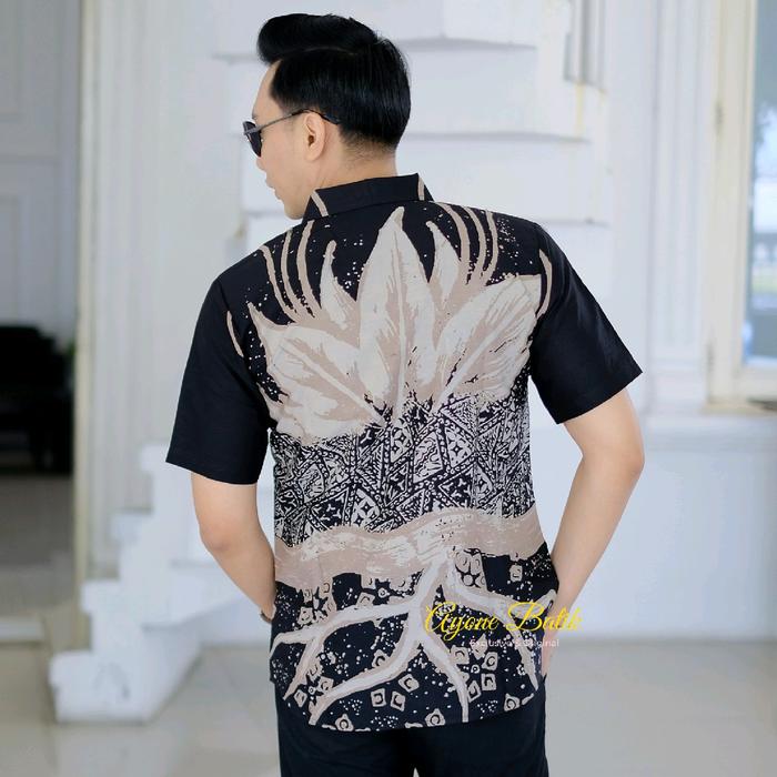 KEMEJA BATIK PRIA SLIM FIT TERBARU HEM BATIK PRIA LENGAN PENDEK WULU HITAM BATIK PRIA LENGAN PENDEK KEKINIAN KEMEJA BATIK ANAK MUDA TERBARU - HITAM, S