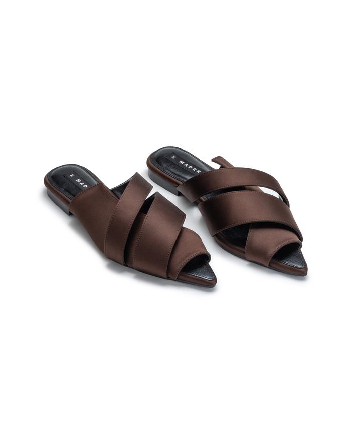 MADER - OPEN TOE MULES SATIN - DARK BROWN - 36