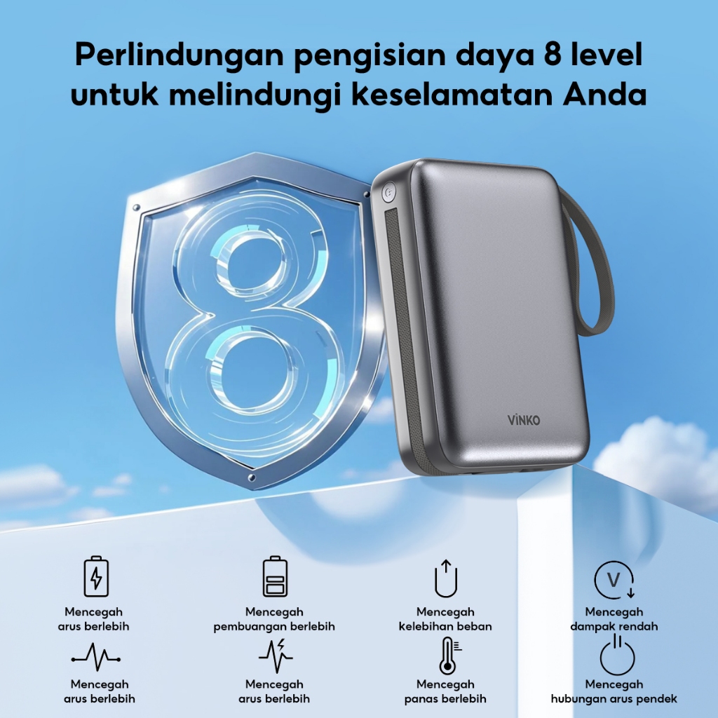 Powerbank 20.000 mAh 22.5W Built-In USB-C/Lingtning Cable for Android/iPhone 17