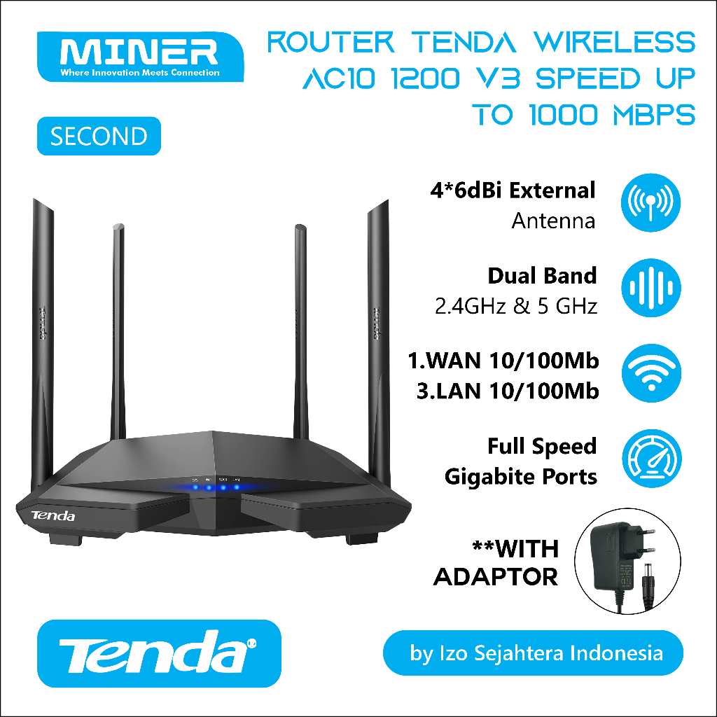 Router WiFi Tenda AC10 Wireless Smart WiFi 5GHz + 2.4GHz Dual Band Gigabit 1200Mbps Gaming & Streaming