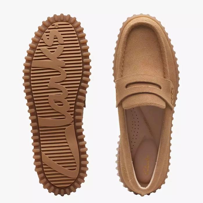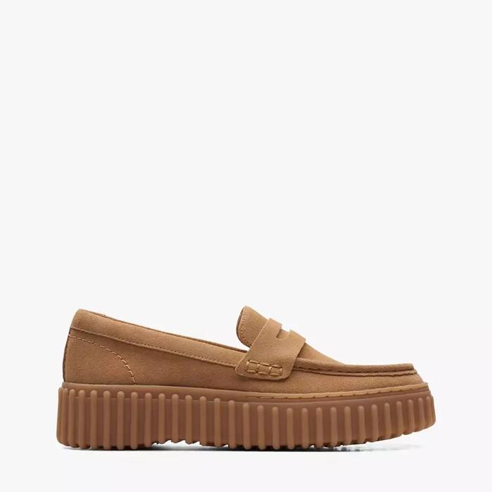 CLARKS TORHILL PENNY ORIGINAL WOMEN'S LOAFERS SHOES SUEDE - LIGHT TAN - 36