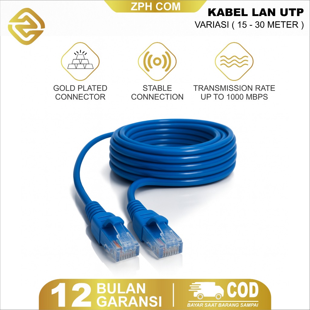 Zph Kabel LAN RJ45 CAT6 Ethernet Patch Cord – Kabel Jaringan Internet High Speed 15M/20M/25M/30M