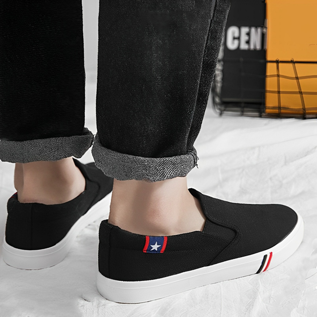 Keeping Sepatu Slip On Pria Sepatu Hitam Cowok Kanvas Sneakers Slop Wakai Casual Spatu Kasual KSC406