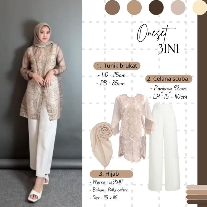 SETELAN WANITA TUNIK OUTER SILANG BRUKAT CELANA HIJAB STYLE OOTD BRUKAT KONDANGAN LEBARAN WISUDA ATASAN - SET 3IN1