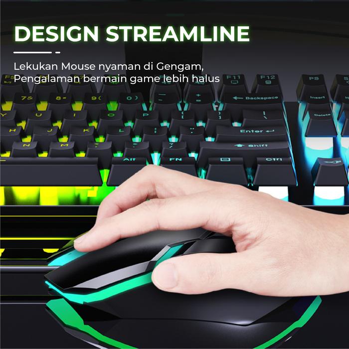 JERTECH Paket Bundle Mouse Gaming M300 Plus Mousepad MP32 Rocket Lampu LED RGB 4 Button Computer