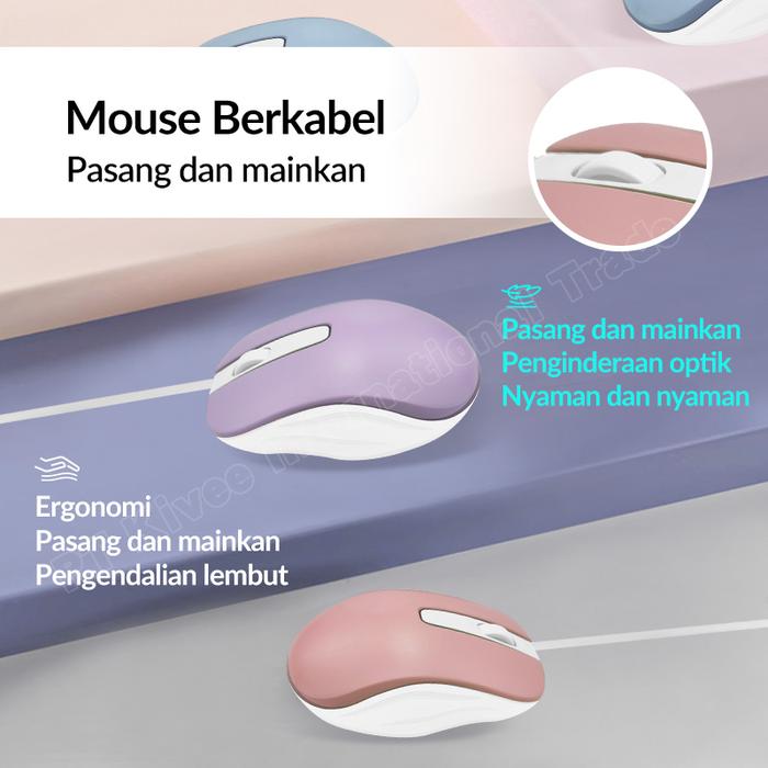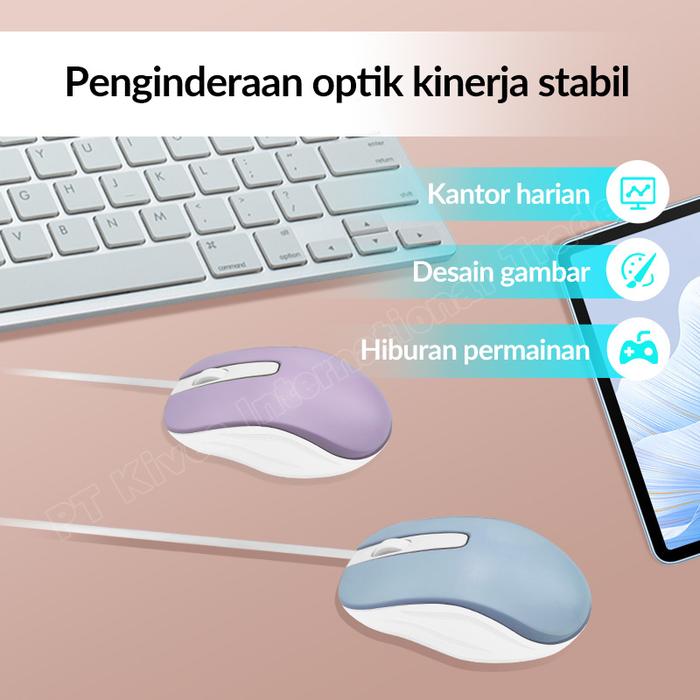 OLYPS Mouse Kabel USB Portable Ergonomic Design untuk PC Laptop Computer Mouse Blue Pink mouse dan - MOU21-Blue
