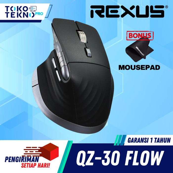 Rexus Flow QZ30 / QZ-30 / QZ 30 Mouse Office Wireless Ergonomic Silent Click - QZ-20 Hitam Free Mousepad